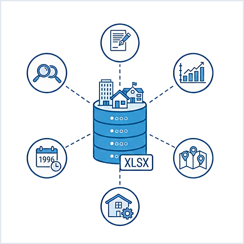 Kinnisvara tehingute statistika põhineb tehingute andmebaasil. Tehingute andmed pärinevad notaritelt, kel on kohustus esitada katastripidajale võõrandamistehingu õiend kümme päeva pärast tehingu tõestamist. Tehingute andmebaasi vanimad andmed pärinevad 1996. aastast. Kinnisvara tehingute statistika veebikeskkonnast on võimalik andmetabeleid alla laadida Exceli tabelitena ehk XLSX-formaadis.